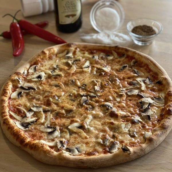 sugo di pomodoro, mozzarella, žampiony